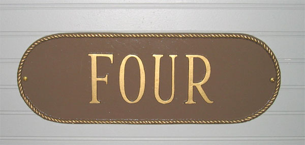 These signs are individually custom-made from cast aluminum and finished with the highest quality exterior paints to help them last for many years. Each sign is available for either wall-mounting or with a stake for mounting in the ground. Click the color chart above to see the nine available color combinations. |
